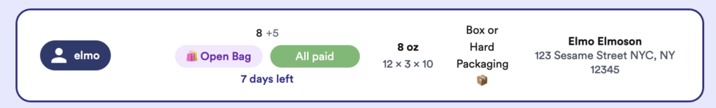 When a buyer fills out your form again before you ship, their items get grouped into the same running order. But there’s no indication it’s a true “bag,” no timer, and buyers don’t see a clear close date — so you end up deciding manually when to cut things off or request payment.
